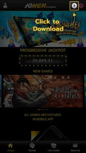 3. Setelah anda scan barcode maka anda akan terhubung dengan situs JokerGaming Resmi, Lalu anda klik menu Unduh yang ada pada kanan atas website resmi jokergaming.